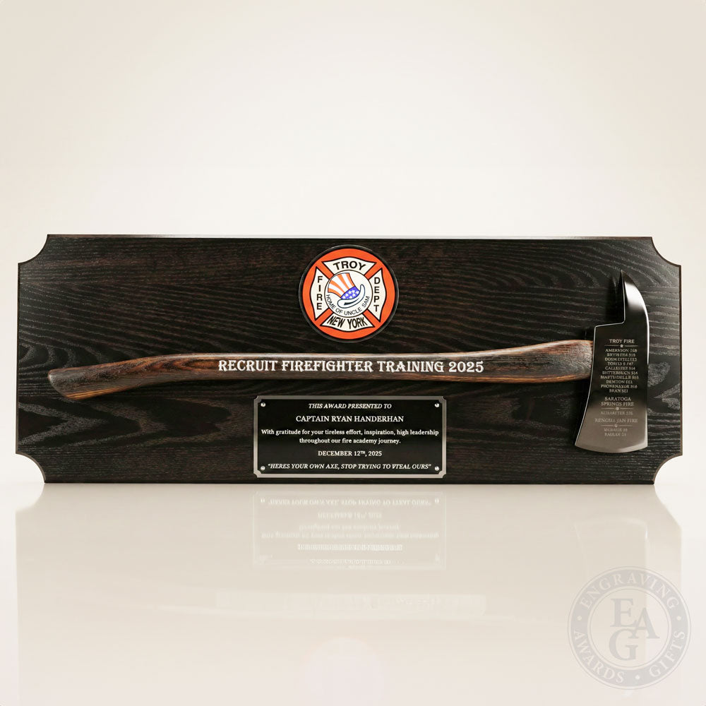 These axe and pike pole plaques are exceptional gifts to present to firefighters to commemorate years of service and other honors such as promotions and graduations.