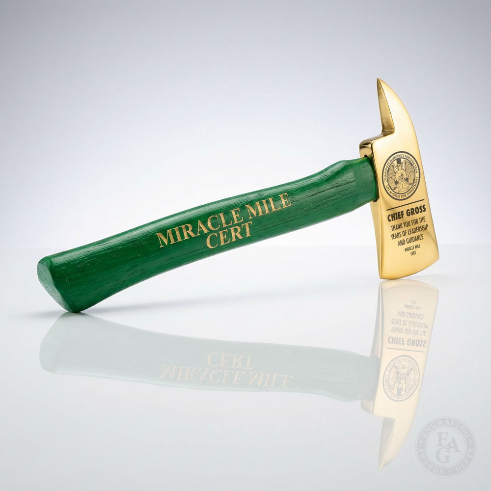 This 15" Gold Plated Ceremonial Firefighter Axe is made with an elegant painted finish in the color of your choice. Present it as a Firefighter's retirement axe, a Firefighter of the Year Award, Fire Academy graduation gift, or your own special occasion.