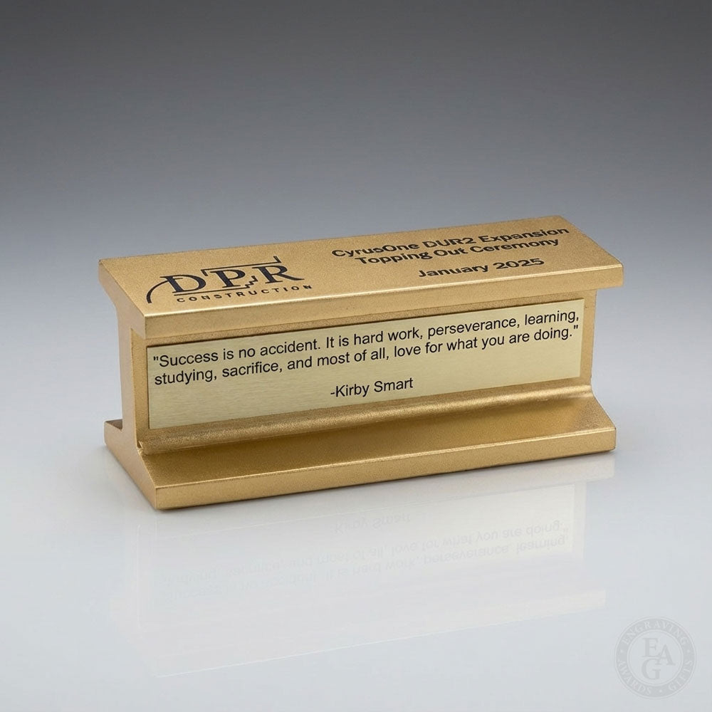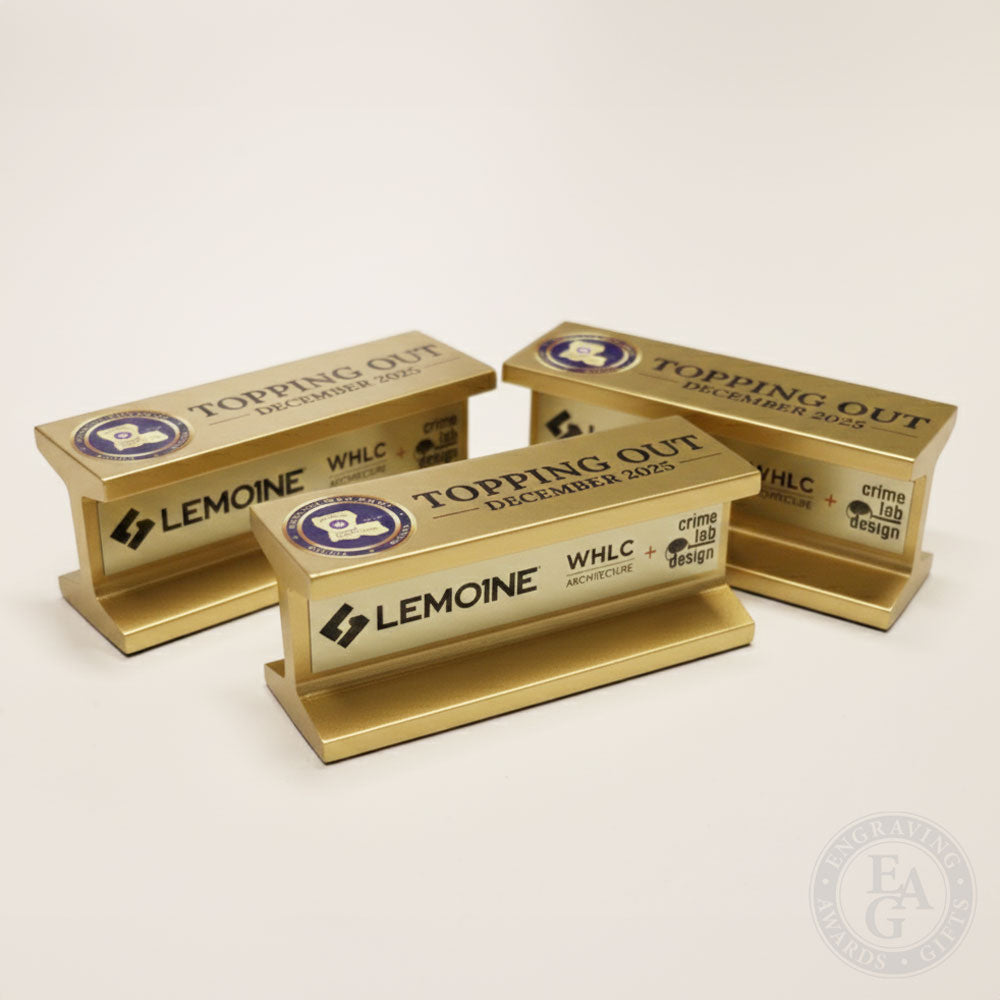 • Gold Ceremonial I-beams - These resin I-beam paperweights are a great keepsakes to gift to your guests at your Topping Out Ceremony or Construction Event. Available in gold or silver.