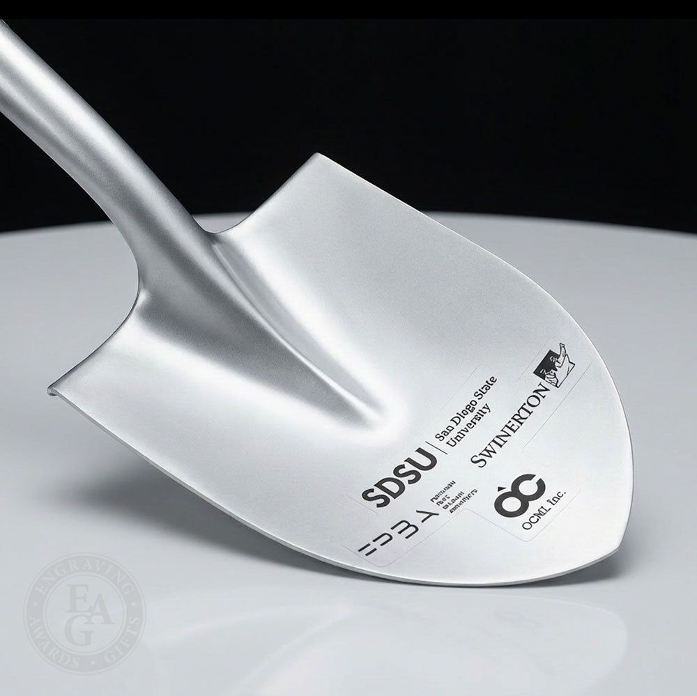 • This 41" Silver Finish Ceremonial Groundbreaking Shovel features a superior high-gloss painted finish and a smooth wooden handle. The D-Handle is the most popular grip style and is the easiest style to hold and use. This shovel is free of labels or manufacturer markings which makes it an exceptional shovel for your Groundbreaking Ceremony.