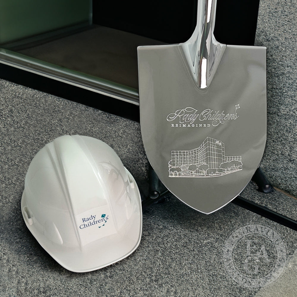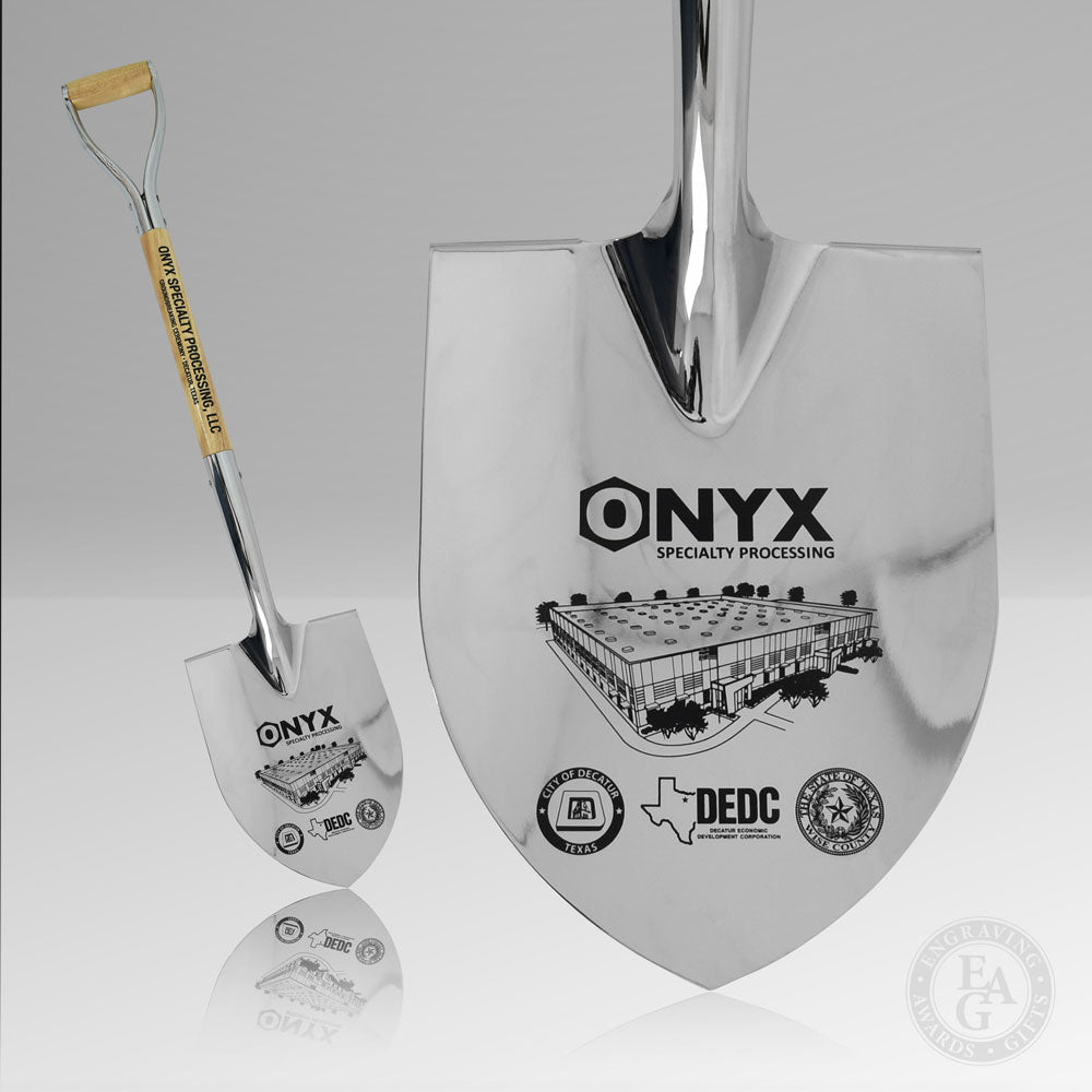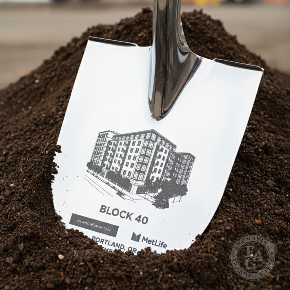 Our line of Groundbreaking Shovel Kits include our most popular gold, chrome, silver, and custom painted ceremonial shovels and hard hats - each featuring a wide range of custom personalization options to choose from. Each Groundbreaking Kit includes the option to add shovel display stands and bows.