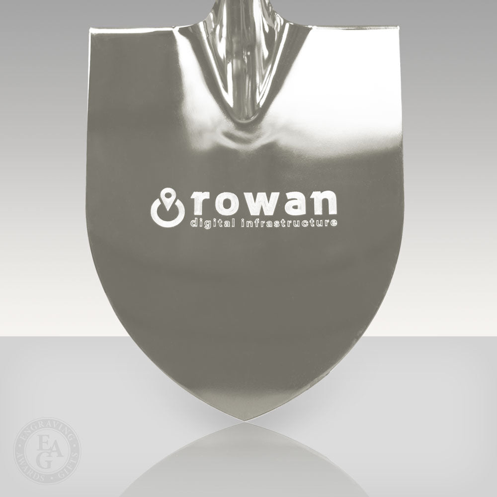 The Specialty Style Spade features a flatter surface area than you would expect to see with a traditional styled spade. The Specialty Style Spade has been custom manufactured to allow for the largest engraving area possible. If you would like a drawing of your development project featured or you would like to showcase the business logos of all of the partners involved in your project, or if you just want your company logo to be a center-piece for photos, this is the right shovel for you.