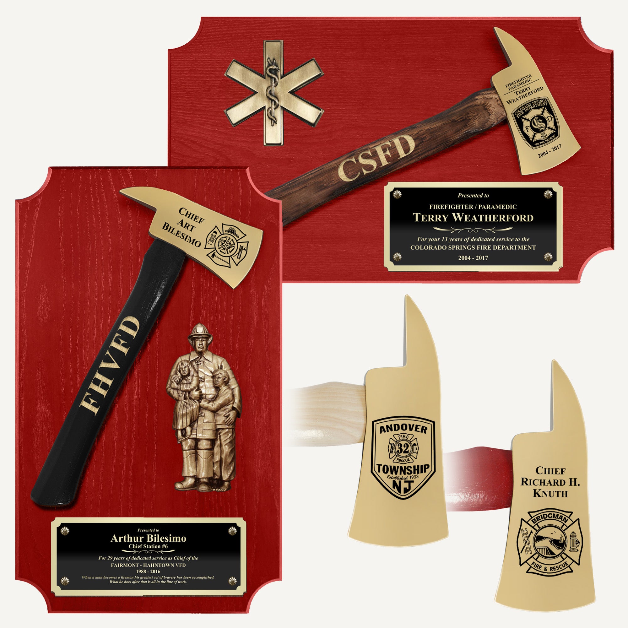 These firefighter axe plaques are traditionally gifted to congratulate and commemorate firefighters on their retirement or to mark years of service milestones. Our plaques are fully customizable.