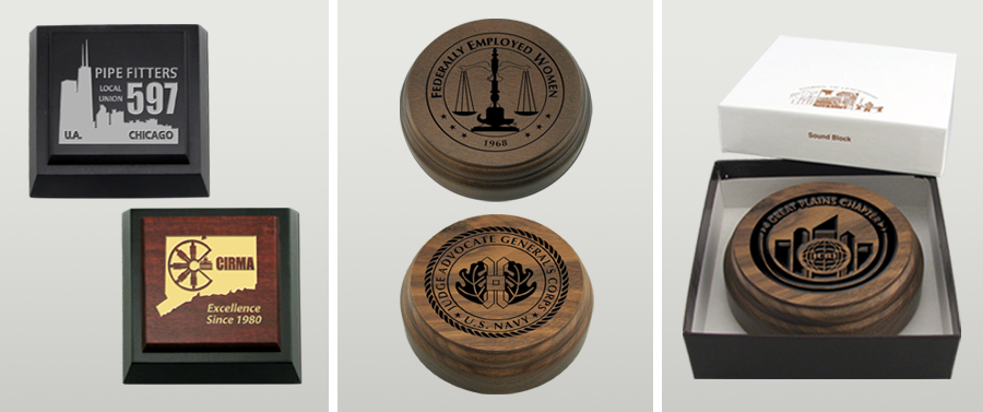 We offer several lines of gavel sets, one of which is sure to meet your needs, and to make a lasting impression on any recipient.