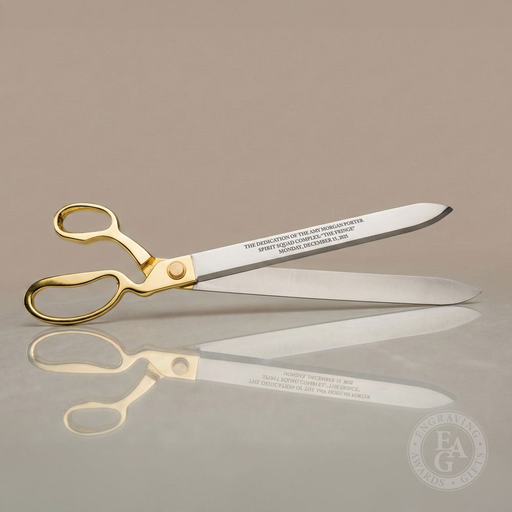 20" Gold Plated Ceremonial Ribbon Cutting Scissors. We manufacture the Best Quality Ceremonial Scissors on the market! These are the true ceremonial scissors you've been searching for. They have everything you need - mirror polished finish stainless steel blades, smooth gold plated handles with no unsightly commercial markings, and custom made individual packaging for safe shipping and storage.