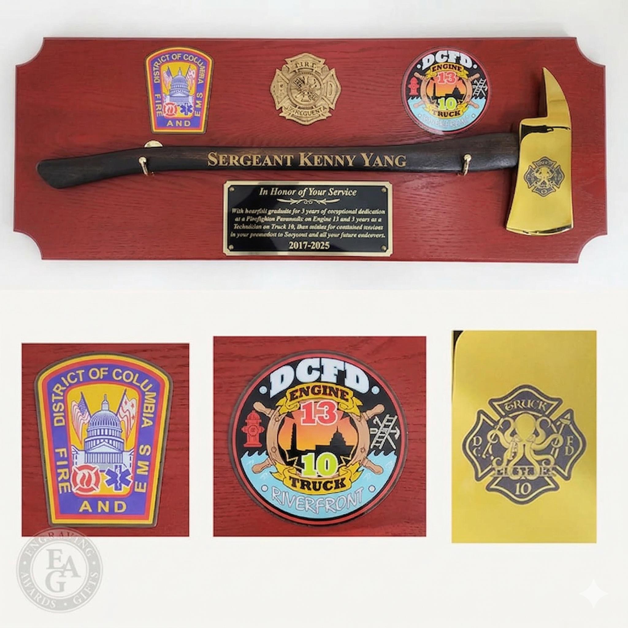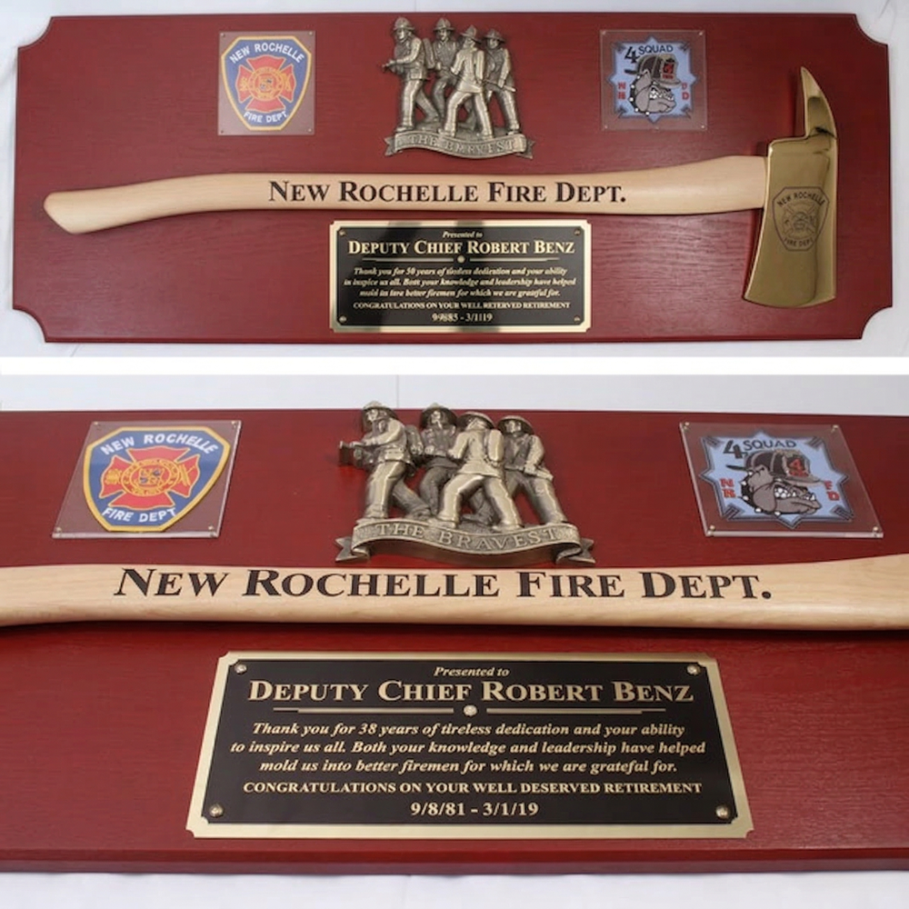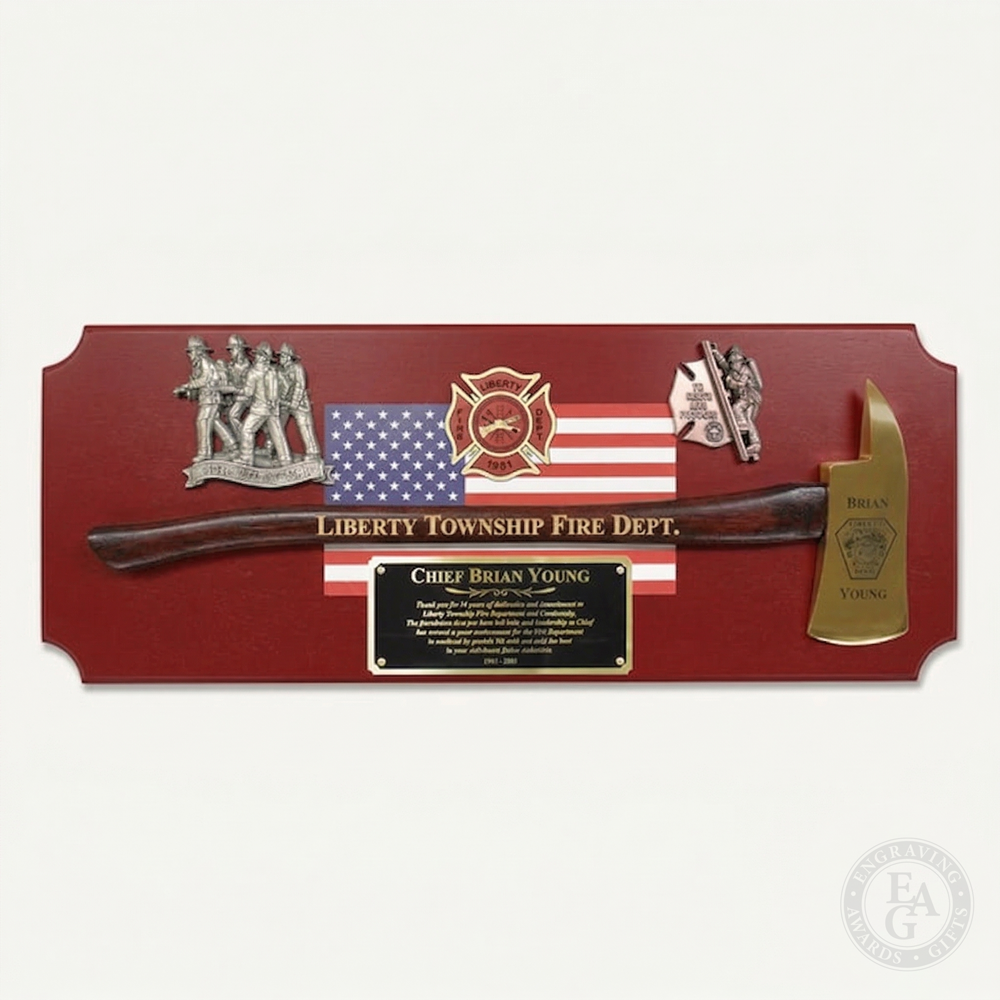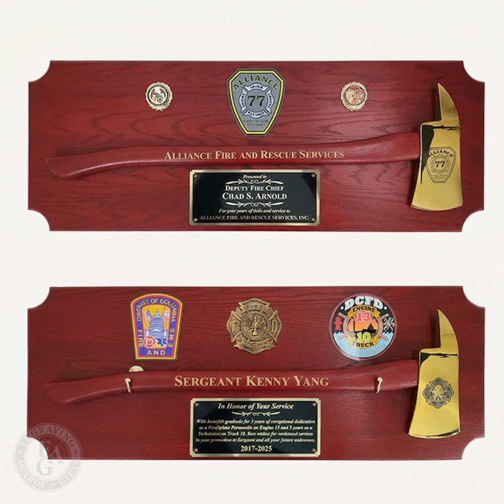 These axe and pike pole plaques are exceptional gifts to present to firefighters to commemorate years of service and other honors such as promotions and graduations.