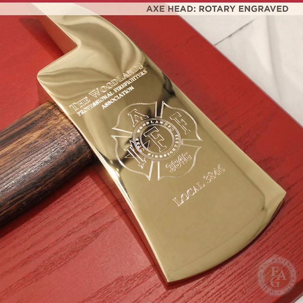 Our 36in Full Size Firefighter Award Axes are available in gold or chrome, each with a variety of handle colors to choose from. The axe heads and handles can be custom engraved with your department patch or logo, names, and service dates. Present them to commemorate years of service or as retirement or graduation gifts.