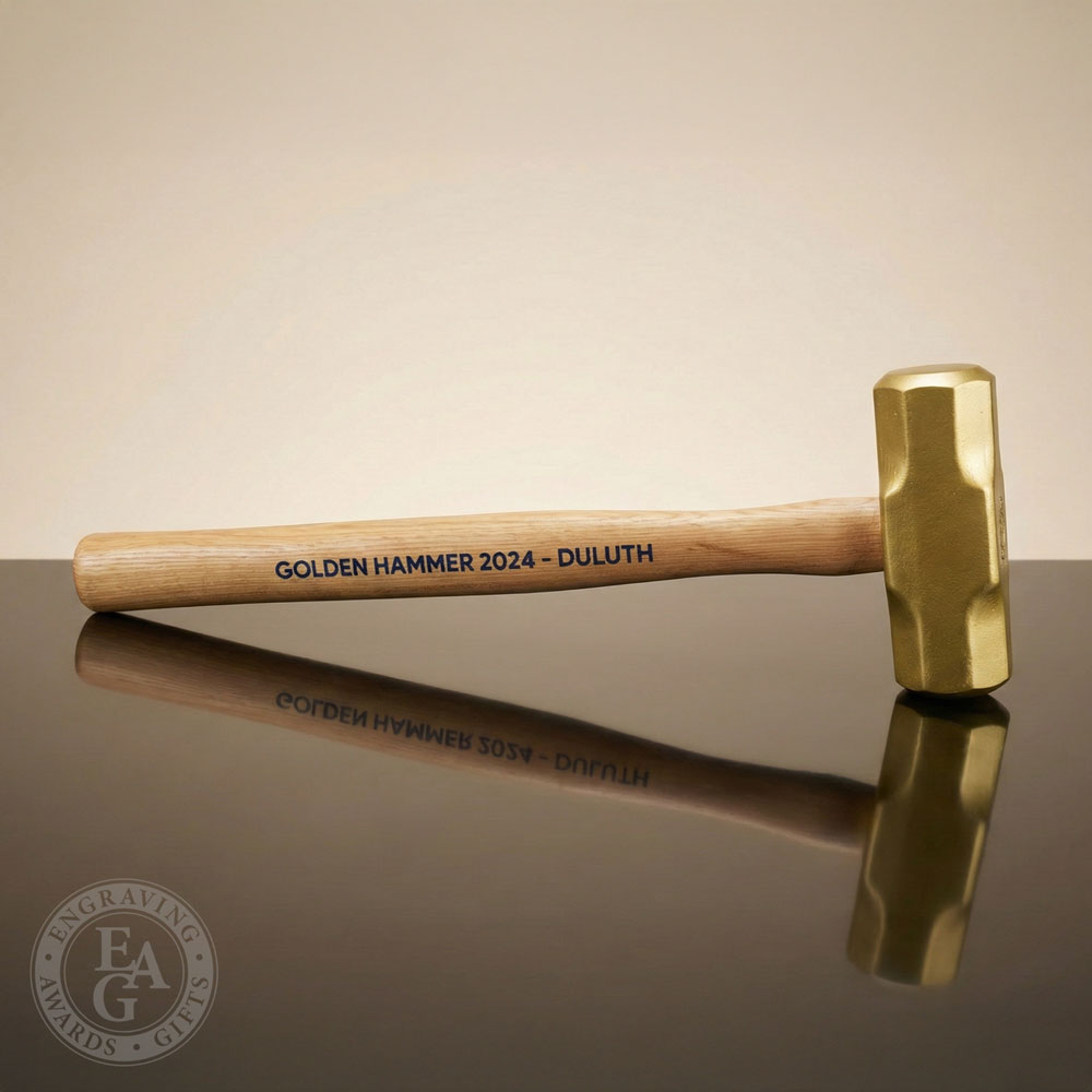 Small Gold Painted Sledgehammer - This custom made Gold Painted Sledgehammer is 16" in length. Gift it to an executive or project lead at your Construction, Topping Out, or Demolition / Reconstruction Event!