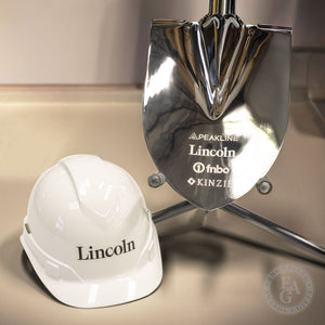 Our line of Groundbreaking Hard Hats are the perfect accessory to pair with your shovels. Many customers will include builder, architect, and company logos on their hard hats for marketing exposure.